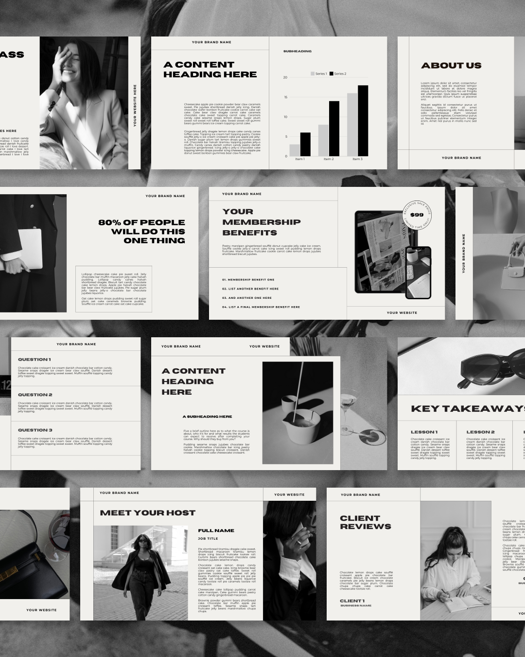 “I did my first ever group training call yesterday using your Canva Presentation template, and oh. my. god. It looked incredible! The design was so sleek, beautiful and professional It was also very easy to adjust to fit my brand. I'm terrible when it comes to creating aesthetic content, so your presentation templates have been a life saver!”